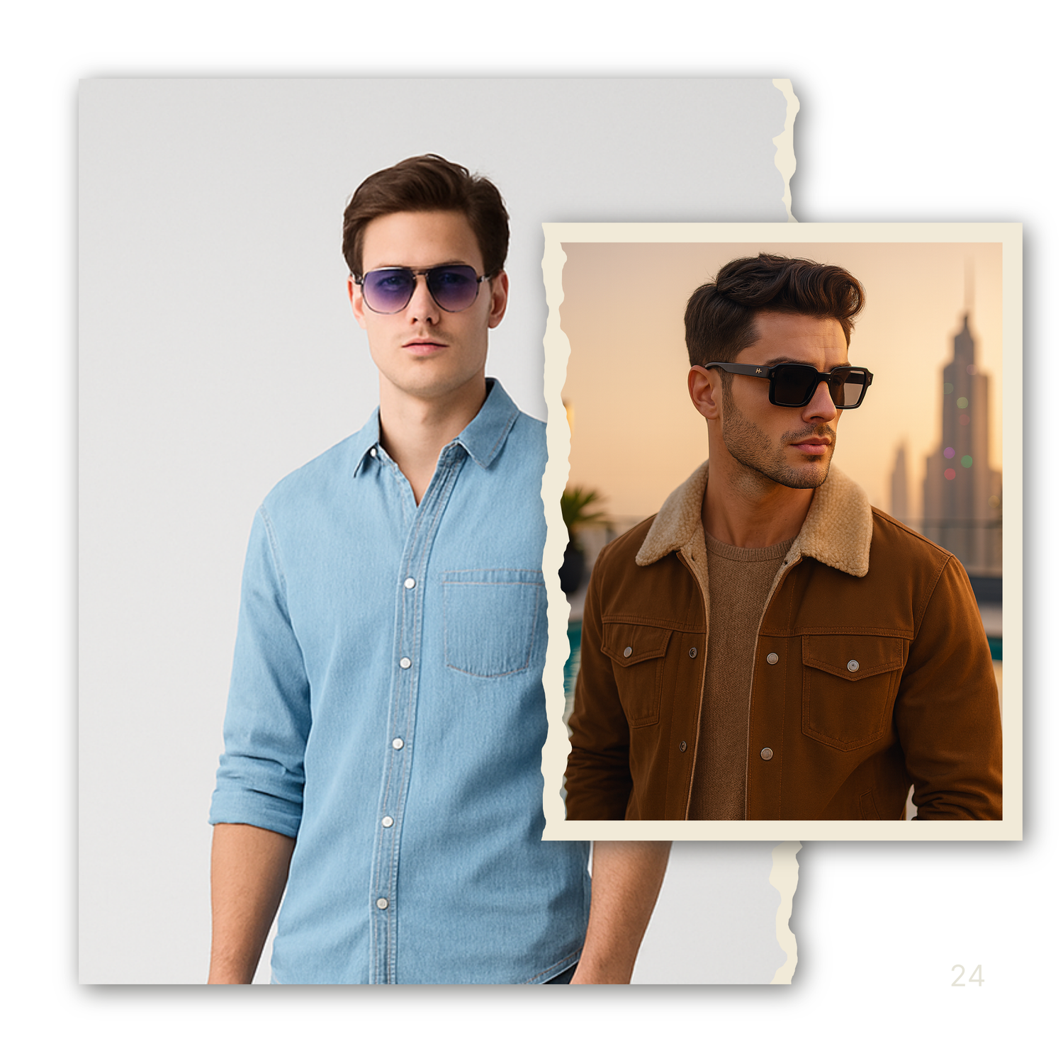 Our vision is to empower every individual to express their unique style with confidence. We aim to bring high-quality, fashion-forward pieces across Men’s Clothing, Men’s Footwear, and Men’s Sunglasses—ensuring every man finds something that complements his personality and lifestyle.